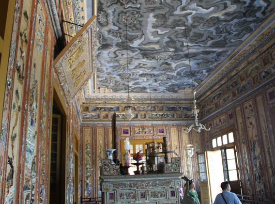 After lunch, we toured the Citadel and the Forbidden Purple City. Hue was the capital of Vietnam during the 19th and early 20th centuries. The Citadel is a fortress along the Perfume River design to protect the Forbidden Purple City, which was occupied by the royal family. Both were the sites of intense fighting and bombing during the 1968 Tet Offensive, and much has been restored.